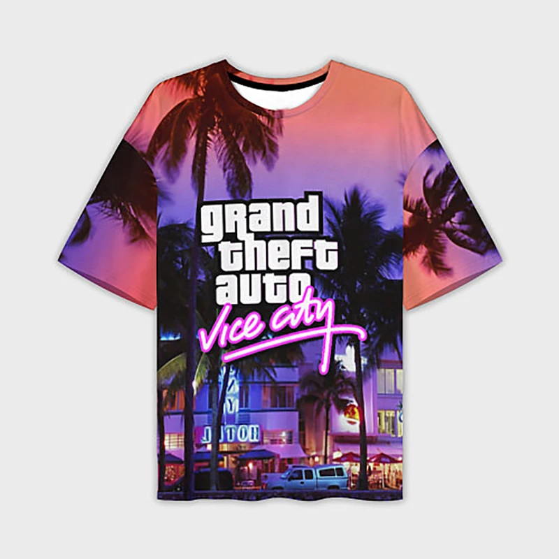 GTA T Shirt Grand Theft Auto Vice City 3D Print Streetwear Men Woman Fashion Oversized T-Shirts Kids Tees Tops Clothing